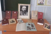 В школьной библиотеке и в кабинете русского языка оформлена книжная выставка "В ряду великих имен", посвященная творчеству Ф.М. Достоевского
