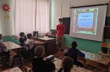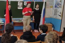 В рамках месячника военно-патриотической и спортивной работы юнармейцы школы проводят классные часы у младших школьников.