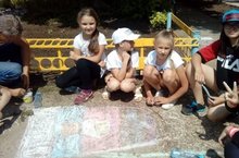 Завтра страна отмечает Государственный праздник "День России". В соответствии с планом работы лагеря, проведены мероприятия, приуроченные к этому празднику. Один из них конкурс рисунков на асфальте "Россия - Родина моя".
