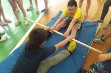 В пришкольном лагере прошел «Детский Сабантуй». Воспитанники с желанием участвовали во всех конкурсах: с завязанными глазами срезали призы, которые висели на нитке, с закрытыми глазами «разбили горшок», перетягивали канат и т.д.