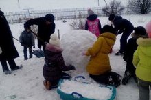 Началась подготовка к новому году. В школе во всю идет строительство снежных фигурок.