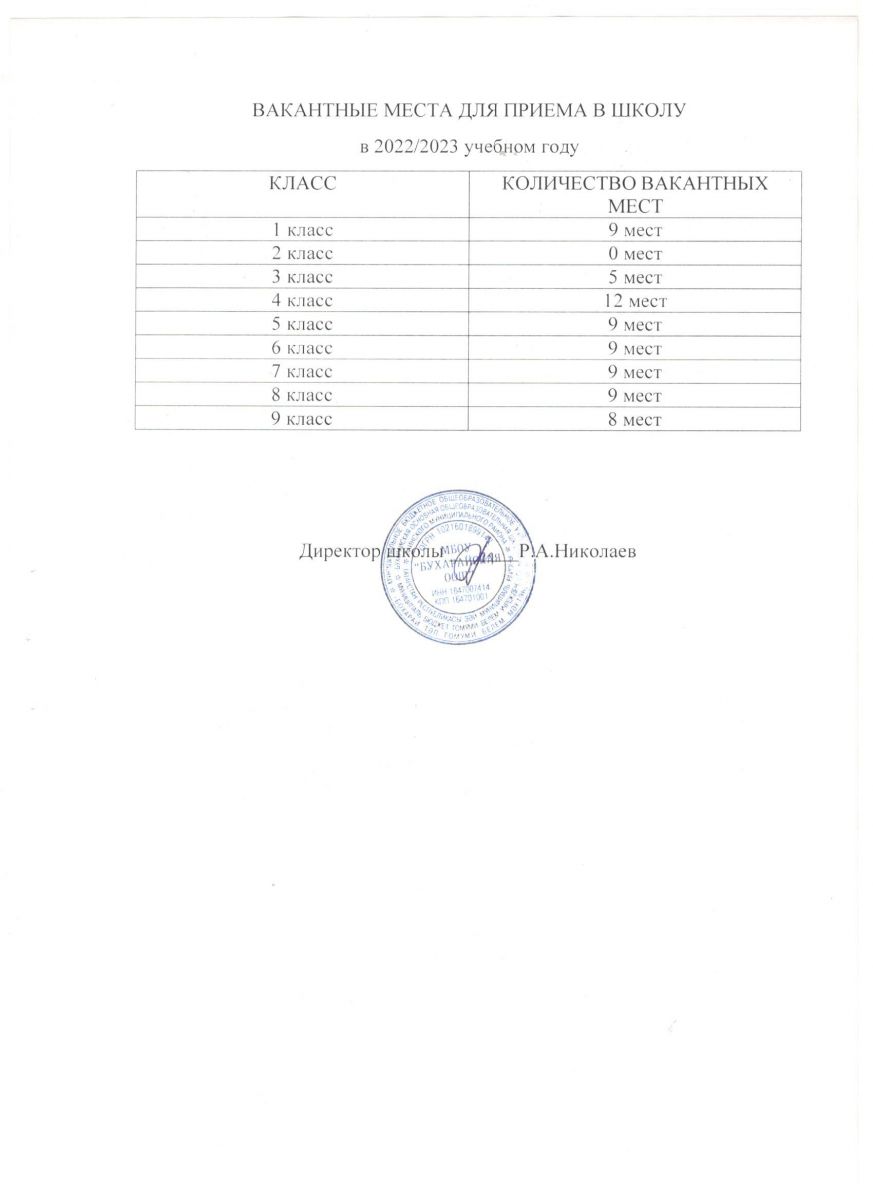 Вакантные места для приема в школу в 2022/2023 учебном году скачать