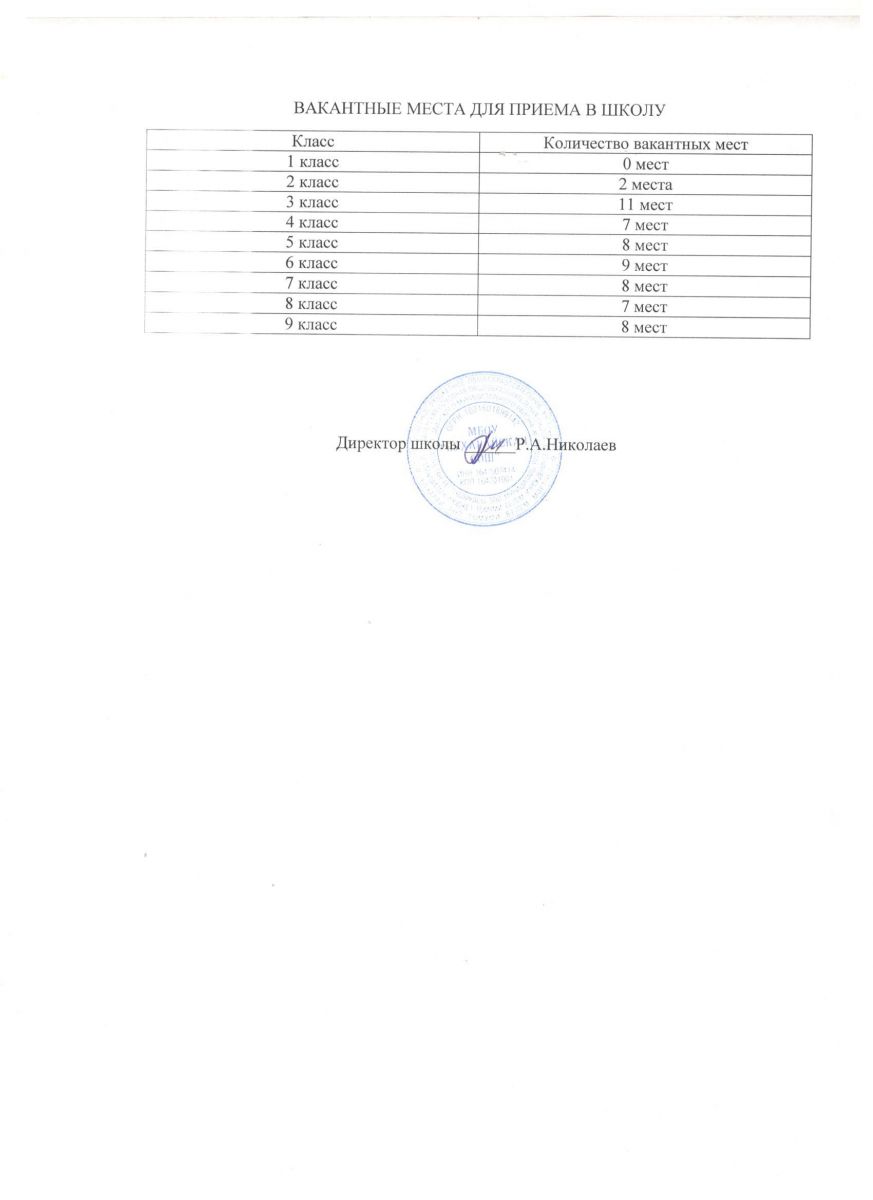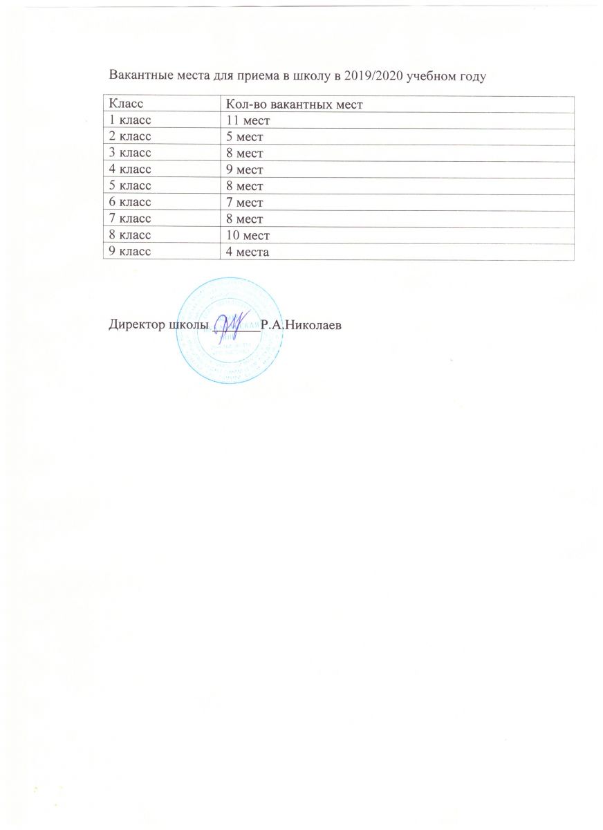 Вакантные места для приема в школу в 2019/2020 учебном году скачать