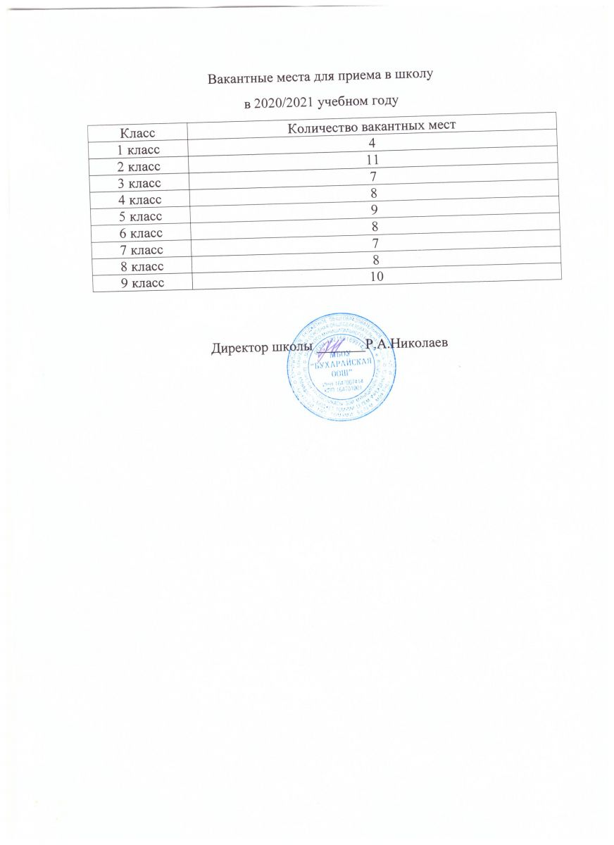 Вакантные места для приема в школу в 2020/2021 учебном году скачать