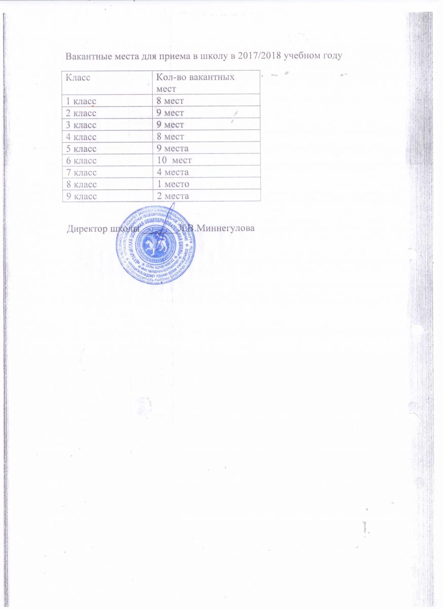 Вакантные места для приема в 2017/2018 учебном году скачать