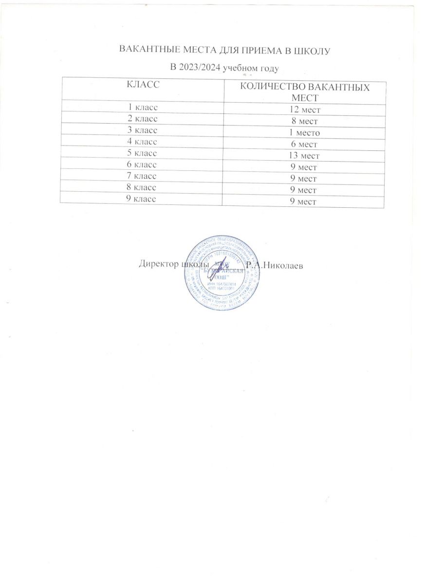 Вакантные места для приема в школу в 2023/2024 учебном году скачать