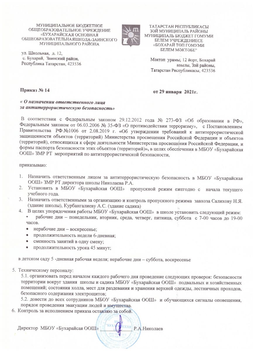 Приказ о назначении ответственного за антитеррористическую безопасность 2023 год скачать