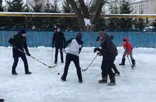 Укучыларның тимераяклары (коньки) булмаса да, 6-9 нчы сыйныф егетләре кортта хоккей уйнадылар.