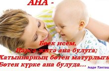 Әни! Җир йөзендә әнидән дә якын, әнидән дә рәхимле, мәхәббәтле, әнидән дә олы җанлы зат иясе юктыр. Дөньяның рәхәтен, тормышның михнәтен, күңелнең сафлыгын, намусның пакълеген аңларга өйрәтүче газиз әниләр! Сез булмасагы, без оясыз кош, моңсыз җыр булыр идек. Күңелегездәге җан җылысының нуры сүнмичә, сүрелмичә безгә – балаларыгызга яшәү чыганагы булып торуын телибез.