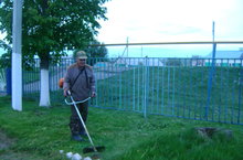Санитар икеайлык тәмамланса да, мәктәптәге эш дәвам итә. Бүген территориядәге үләннәр чабылды.