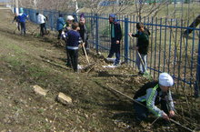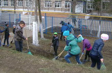 Кояшлы,җылы көннән файдаланып, укучылар мәктәп территориясен җыештырды, техник хезмәткәрләр агачларны агартылар.