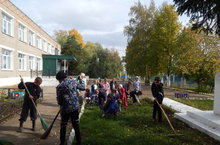 Башлангыч сыйныф укучылары мәктәп территориясендәге яфракларны, чүп -чарны җыештырдылар.