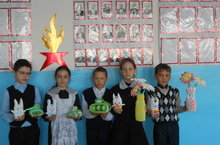 Башлангыч сыйныф укучылары Муса Җәлилнең тууына 110 ел тулу уңаеннан шагыйрьнең шигырьләрендәге геройларын төсле кәгазьләрдән ясадылар