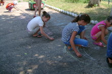 Пришкольный лагерь. В рамках антинаркотической акции в пришкольном лагере "Кояшкай" прошел конкурс рисунков на асфальте "Жизнь без наркотиков". 23.06.2015