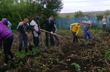 Бакчада көзге эшләр чоры. Мәктәпнең бәрәңге басуында эш кайный.