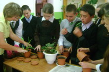 8 нче сыйныф укучылары биология укытучысы Шәрәфеева Гүзәлия Вәҗетдин кызы белән бергә гөлләр күчереп утырттылар.