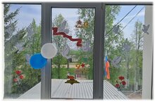 Юнармейцы отряда имени Газинура Гафиатуллина оформили окно своей школы с помощью рисунков и картинок, посвящённых Победе советского народа над фашизмом в Великой Отечественной войне