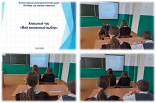 В рамках Всероссийской антинаркотической акции "Сообщи, где торгуют смертью" в 7 классе прошёл классный час "Мой жизненый выбор".