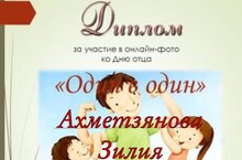 Мәктәпнең 8 нче сыйныф укучысы, әтиләр көненә багышланган онлайн-фото «Один в один» акциясендә катнашып, диплом белән бүләкләнде.