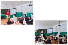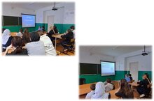 В школе прошла встреча со студентами. Они рассказали о своих направениях обучении, студенческой жизни. Играли интеллектуальную игру. В спортзале играли волейбол.
