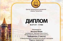 Победителями данного конкурса стали : Иванова Юлия –Диплом победителя (1 место), Шайхутдинова Камилла –Диплом победителя (1 место), Маштыева Алина – Диплом победителя (2 место) (педагог Дмитриев С.И.). Поздравляем!!!