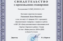 15 февраля педагог отделения изобразительного искусства Галимова Л.Р. прошла образовательную стажировку по теме «Живые ремесла», которая прошла на базе МБУ ДО «Центр дополнительного образования детей «Заречье» Кировского района г.Казани.