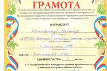 Победителями данного конкурса стали : Канафина Эвелина -1 место (педагог Степанова А.Н.), Бектагирова Карина -2 место (педагог Васильева В.Н.), Ахметова Аделя -2 место (педагог Баширова Э.И.) и Зыков Артём -2 место (педагог Дмитриева Е.Н.). Поздравляем!!!