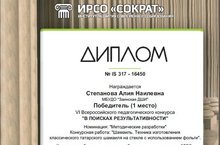 Поздравляем Степанову А.Н., педагога отделения изобразительного искусства, ставшую победителем (1 место) в Vl Всероссийском педагогическом конкурсе «В поисках результативности» в номинации «Методические разработки».