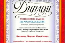 Поздравляем Инюшеву М.М., педагога отделения музыкального искусства, занявшую 1 место во Всероссийском конкурсе «Взаимодействие педагогов и родителей в условиях реализации ФГОС всех уровней образования РФ».