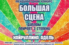 Поздравляем Хайруллину Адель, ставшую лауреатом 3 степени в Международном конкурсе «Большая сцена» (педагог Котельникова Е.В.). Молодцы! Желаем дальнейших успехов.