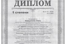 Поздравляем Хайруллину Адель, занявшую 1 место в lV Всероссийском конкурсе для детей и молодёжи «Поколение одарённых» (педагог Котельникова Е.В.). Молодцы! Желаем дальнейших успехов.