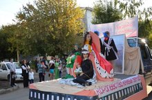 В карнавальном шествие по улицам города обучающиеся школы искусств на нарядной машине показали героев сказки советского детского телефильма «Королевство кривых зеркал».