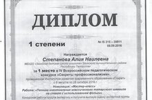 Поздравляем Степанову Алию Наилевну, педагога отделения изобразительного искусства, занявшую 1 место в ІV Всероссийском педагогическом конкурсе «Секреты профессионализма».