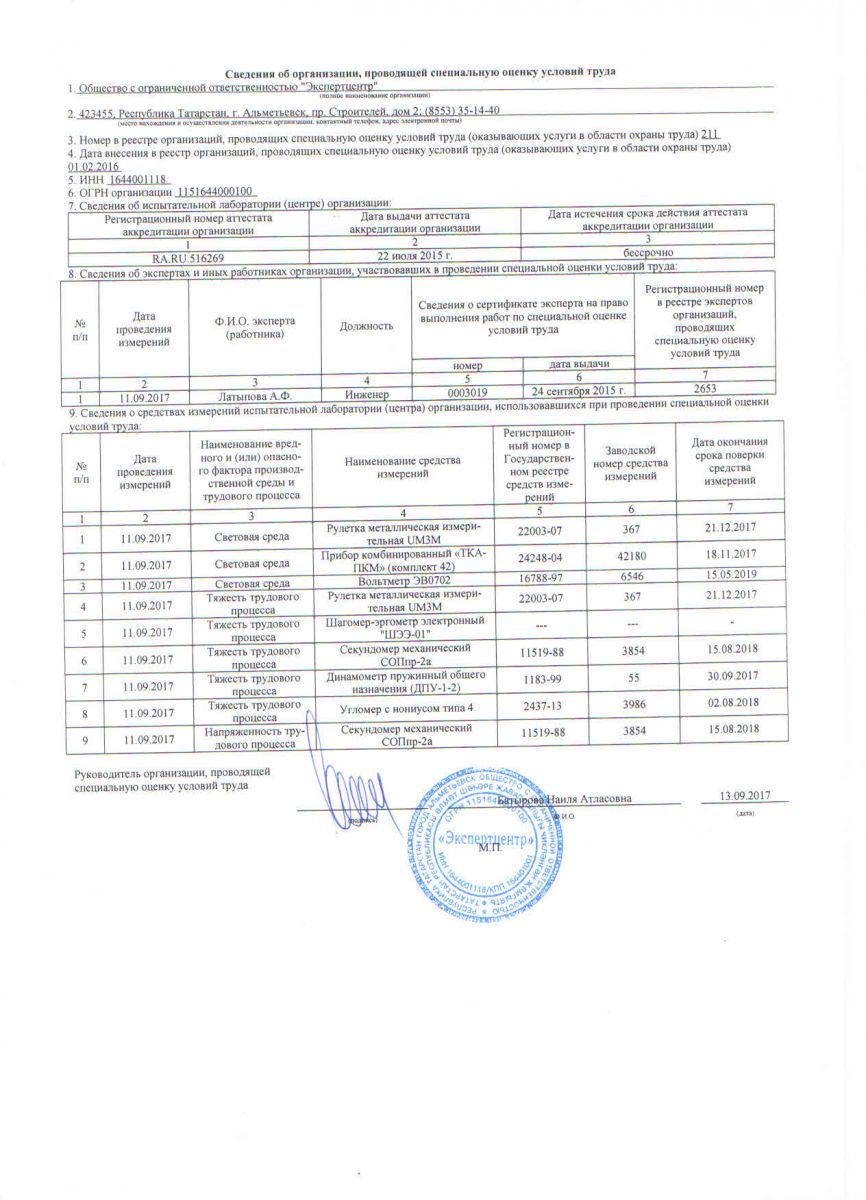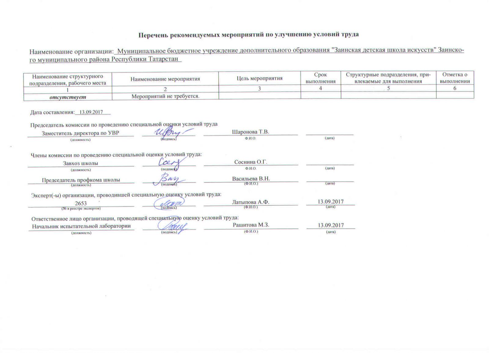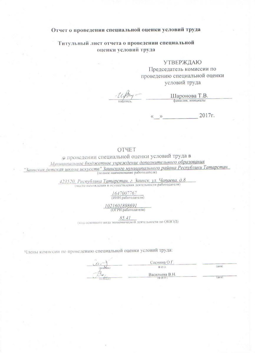 Отчет о проведении специальной оценки условий труда в МБУДО Заинская ДШИ