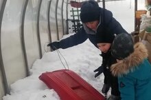 Экологическая акция "Трудовой десант". Воспитанники подготовительной группы совместными усилиям покрыли почву в теплице снегом для того, чтобы почва была готова к посадкам ранней весной. Снег тает пробуждая землю и пропитывает ее влагой. Считается, что талая вода полезна и никакая проточная вода ее не заменит.