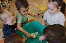 1 младшая группа познакомились с качествами и свойствами предметов. Цели: учить различать и называть качество предметов: твёрдый, мягкий, тяжёлый, лёгкий; свойства: тонет, плывет; развивать внимание, интерес к экспериментальной деятельности.