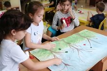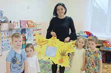 В преддверии празднования "День учителя" воспитанники средней группы вместе с воспитателем подготовили поздравительную стен. газету с поздравлениями для учителей ЗООШ 5