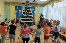 Сегодня ребята попрощались с новогодней елочкой до следующего года. Дети подготовили музыкальные номера, стихи для зеленой красавицы. На праздник из новогодних сказок к ребятам пришли сказочные персонажи , которые поиграли вместе с детьми в игры, спели с ними новогодние песни.