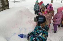 Очень интересно наблюдать, как дети изображают на снегу: различные линии, предметы. Они умело импровизируют и фантазируют, что не всегда удается на листе бумаги. Дети в восторге, когда в результате рисования «необычными красками» (пластмассовая бутылка с гуашевой краской) на белом снегу появляются веселые желтые, красные, оранжевые узоры. И когда перед глазами предстает целостная картина - радости нет предела. Разве это не чудо?