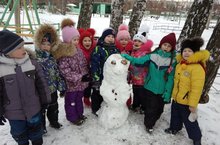 Сегодня дети подготовительной группы отметили появление первого снега и слепили из него Снеговика.