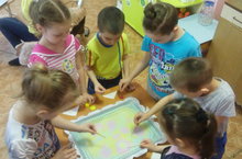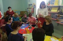 19 апреля на базе детского сада "Аленка" состоялось заседание муниципального методического объединения инструкторов по физической культуре. Тема занятия, которое показала коллегам физинструктор Ольга Ивановна Закарьянова, "Королевство цветов". Идея занятия построена на применении нетрадиционного оборудования в процессе физического развития дошкольников на занятиях по физкультуре. По виду занятие получилось интегрированным, в котором также приняли участие воспитатель Тулынина Л. А., она организовала мастер-класс по применению нетрадиционной техники рисования в стиле эбру (рисование на воде) и музыкальный руководитель детского сада Храмова Е. И., организовавшая мастер-класс на тему "Хор рук".