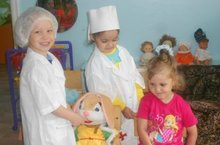 Предпрофильное образование в среднем дошкольном возрасте имеет особую специфику. Дети знакомятся с профессиями своих родителей, сотрудников детского сада. Воспитатели помогают своим воспитанникам в организации сюжетно-ролевых действий, раскрывающих все стороны профессий на доступном дошкольникам уровне. Сегодня дети средней группы играли в сюжетно- ролевую игру "Больница", закрепляя при этом знания о профессии врача.
