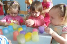 Сегодня мы познакомили детей со свойствами воды (показали , что вода замерзает на холоде, что в ней растворяется краска). Дети 2 мл.группы узнали, что лед можно получить даже летом, если воду поместить в морозильную камеру.