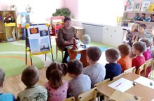 Сегодня в детском саду в старшей группе прошло занятие, посвященное творчеству татарского поэта, литературного критика, публициста и общественного деятеля Габдуллы Тукая. Воспитатель по обучению татарскому языку, Замалдинова Алия Мидхатовна, рассказала детям о жизни и творчестве поэта. Дети слушали и читали стихи Тукая. В конце занятия воспитанники группы посмотрели мультипликационный фильм по мотивам произведений поэта.