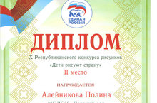 От души поздравляем воспитанницу нашего детского сада Алейникову Полину, занявшую 2 место в X Республиканском конкурсе рисунков "Дети рисуют страну" в номинации "Чистые воды - чистые берега". Одной из целей конкурса стала цель - популяризация идей Года водоохранных зон, объявленного в Республике Татарстан Указом Президента РТ.