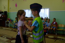 Работа детского сада в сентябре проходила под девизом "Внимание, дети!". Дети подготовительной группы стали участниками сюжетно-ролевой игры "Мы - юные пешеходы". В ходе игры дети закрепили знания о правилах дорожного движения, дорожных знаках, средствах регулирования, а также углубили знания о работе светофора и его назначении. Закрепили правила безопасного поведения на улице и понимания опасности игр на проезжей части.