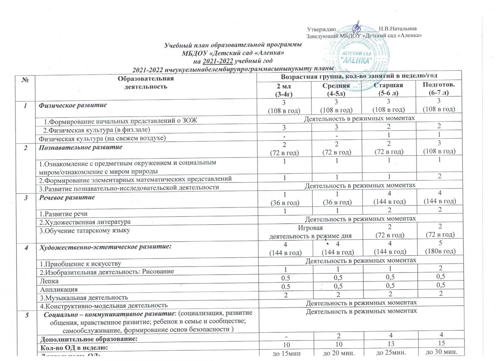 учебный план образовательной программы на 2021-22 гг.