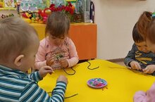 Ребята первой младшей группы "Бабочки" играют с большим желанием в дидактическую игру «Собери бусы» — увлекательное и полезное занятие для младших дошкольников. Педагог Лейля Ядкаровна формирует умение у детей собирать предметы на шнурок.