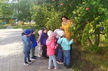 НА ПРОГУЛКЕ ВОСПИТАННИКИ СТАРШЕЙ ГРУППЫ НАБЛЮДАЛИ ЗА РЯБИНОЙ. ВОСПИТАТЕЛЬ С ДЕТЬМИ РАССМОТРЕЛИ ВНЕШНИЙ ВИД ДЕРЕВА, СЕЗОННЫЕ ИЗМЕНЕНИЯ ЛИСТЬЕВ И ПЛОДОВ, ОТМЕТИЛИ ИХ ЗАПАХ, ВКУС. ДЕТИ РАСШИРИЛИ СВОИ ЗНАНИЯ О ПОЛЬЗЕ РЯБИНЫ, ЕГО ЦЕЛЕБНЫХ СВОЙСТВАХ.