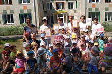 С детьми провели беседу про семьи, отгадывали загадки, играли в словестные игры. За отгаданную загадку получили лепестки ромашки, затем на лепестках нарисовали каждый свой портрет, и из этих лепестков составили ромашку. Какая счастливая семья у нас получилась!